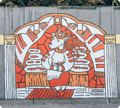 We create murals that bring back Ukrainian symbols and meanings to the frontline areas. They help people feel connected to society and remind them that they are not abandoned.